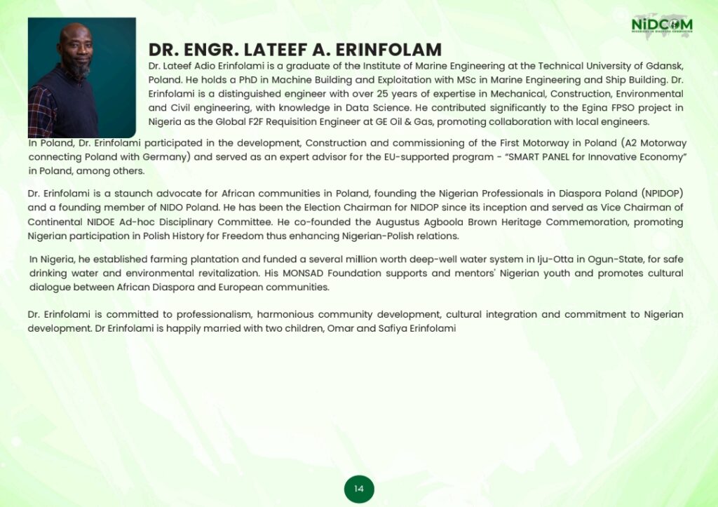 Dr. Lateef Erinfolami was honoured with a National Diasporal Merit Award for Leadership Development.